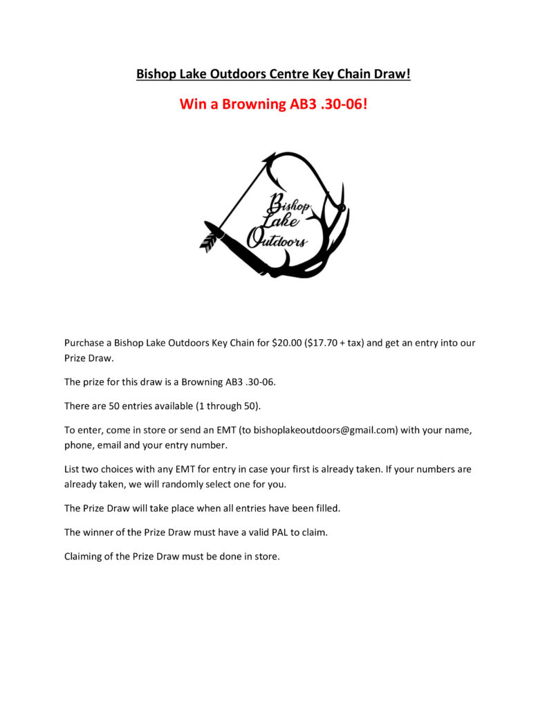 With the new year now well under way, it is time for us to begin another Bishop Lake Key Chain Draw!